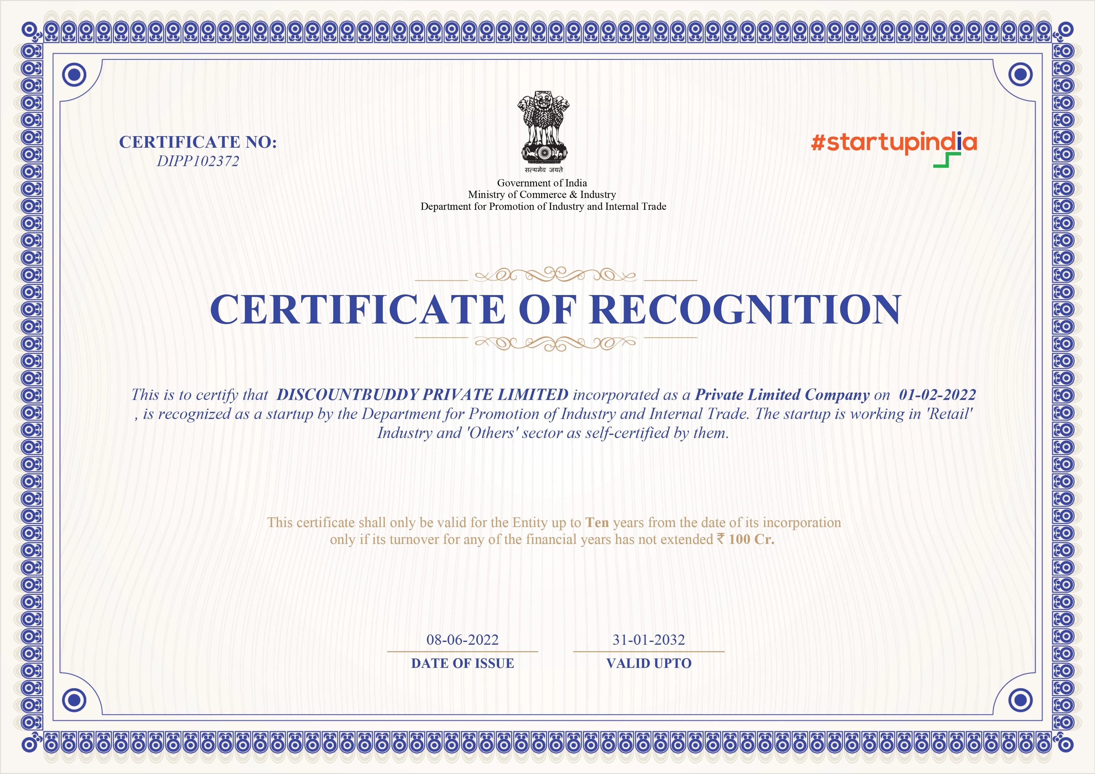 we feel immense pride in announcing that now we're (DIPP) recognized by StartupIndia